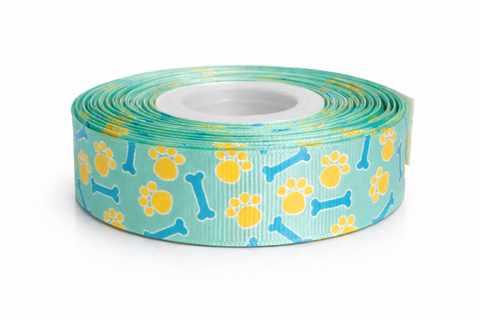 🐾 „Sommerliche Frische für Deine DIY-Ideen – Türkises Ripsband mit gelben Pfoten & blauen Knochen“ ✨