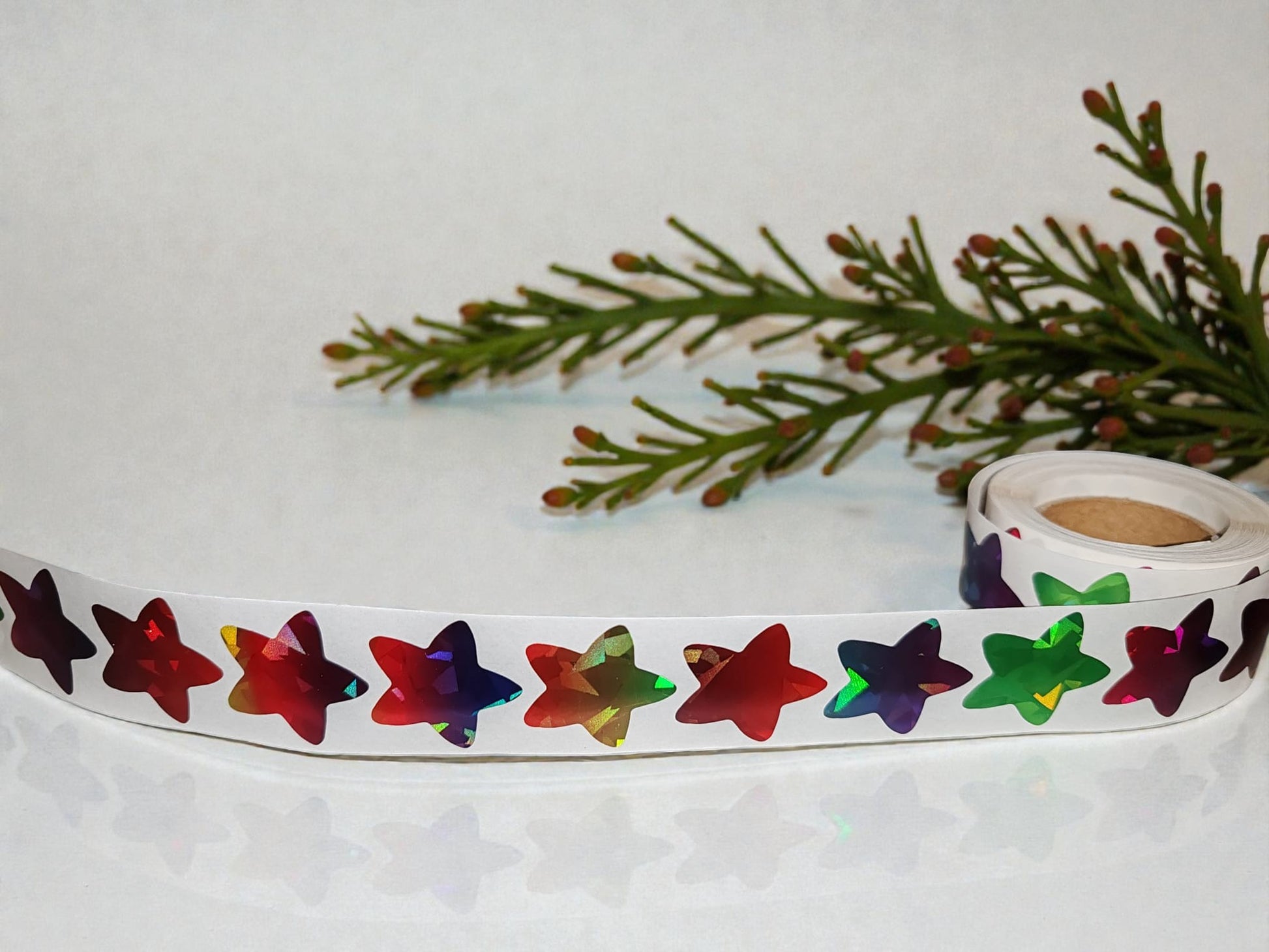 Diese selbstklebenden Sterne lassen jeden Untergrund funkeln! Die ca. 2,5 cm großen Aufkleber kommen in bunten Farben und mit schimmerndem Hologrammeffekt, der je nach Lichteinfall für ein kleines Farbspektakel sorgt. Jeder Stern ist ein kleines Highlight – ob auf Grußkarten, Geschenkverpackungen oder im Kalender. Die Sticker haften gut, lassen sich aber auch ganz einfach und rückstandslos wieder entfernen. Welche Farben du bekommst? Das bleibt eine kleine Überraschung – denn die Sterne werden bunt gemischt verschickt!