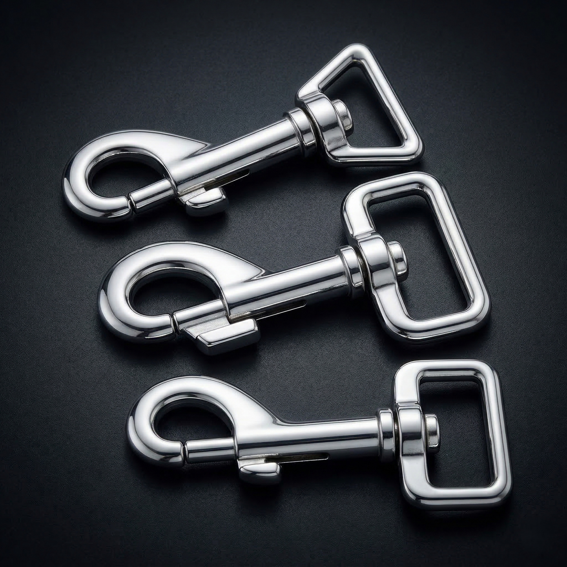 Diese hochwertigen Karabinerhaken aus einer soliden Zinklegierung sind die ideale Lösung für Leinenhersteller und DIY-Begeisterte, die keine Kompromisse bei der Sicherheit eingehen wollen. Das glänzend verchromte Oberflächenfinish sorgt nicht nur für eine edle Optik, sondern bietet auch eine hervorragende Haltbarkeit im täglichen Einsatz. Ausgestattet mit einer kantigen, drehbaren Öse, verhindern diese Haken zuverlässig ein Verdrehen der Leine und garantieren eine saubere Führung des Gurtbandes. Ob für den kräftigen Deutschen Schäferhund oder den aktiven Labrador Retriever – diese Karabiner bieten eine vergleichbare Festigkeit zu teuren Alternativen aus Edelstahl und bleiben dabei absolut wirtschaftlich. Auf der Hardware ist kein Text oder Branding aufgebracht, sodass das minimalistische Design vollflächig zur Geltung kommt.