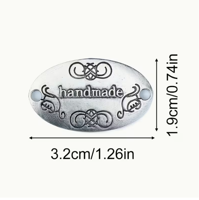 Metall-Label "Handmade" Oval 32 mm – Zum Aufnähen & Nieten