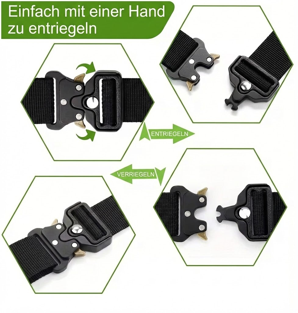 Diese massive angesagten Steckschnalle in Metall-Zinklegierung sieht nicht nur extrem cool aus, sondern hält auch ordentlich was aus. Sie besteht aus einer robusten, rostfreien Zinklegierung und lässt sich durch den goldenen Klick-Mechanismus blitzschnell öffnen und schließen. Perfekt geeignet für taktische Gürtel, robuste Hundehalsbänder oder um deinen Rucksack optisch aufzuwerten. Sie passt genau für Gurtbänder mit 25 mm Breite.