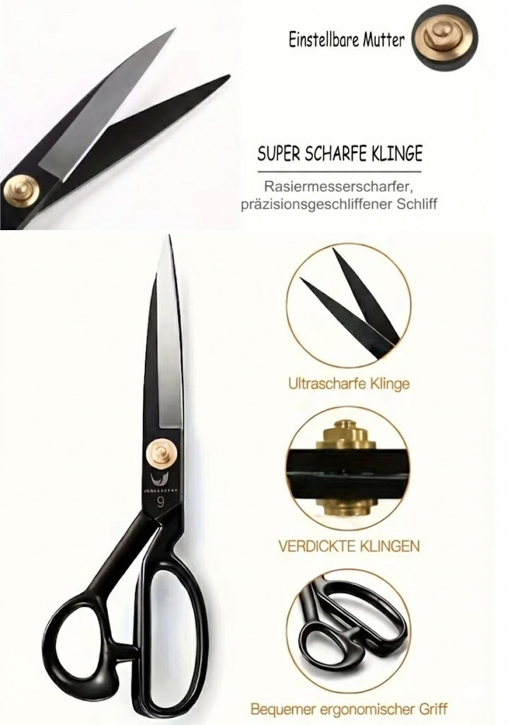 Diese Hochleistungs-Schneiderschere gleitet durch Stoffe wie Butter. Gefertigt aus geschmiedetem Manganstahl, bleibt die Klinge extrem lange scharf und ist robust genug, um auch mehrlagigen Jeansstoff oder dickes Leder mühelos zu schneiden.