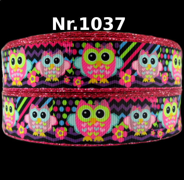 Eulen Cartoon Band mit buntem Zackenmuster – 25mm
