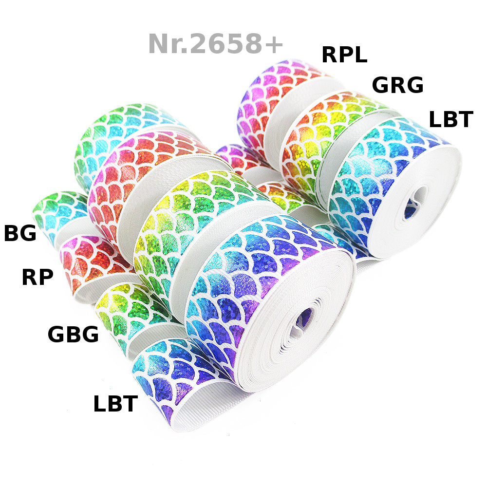 Tauche ein in maritime Eleganz mit unserem einzigartigen holografischen Glitzerband, verziert mit einem Fischschuppenmuster, das an das Glitzern der Meeresoberfläche erinnert!