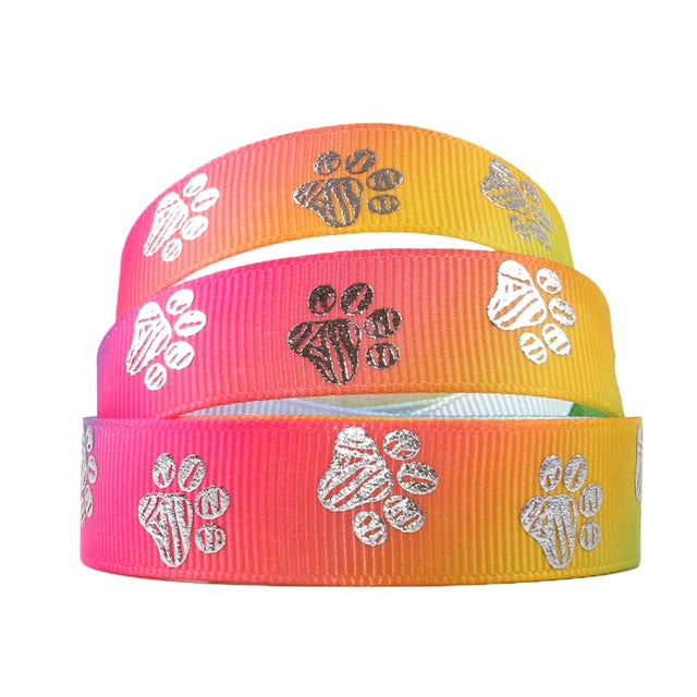 Unser Bedrucktes Band Pfotenabdrücke ist perfekt für Tierliebhaber und ihre kreativen Projekte.Mit einem bunten Hintergrund und silberfolierten Pfotenabdrücken verleiht dieses 16mm breite Band jedem Werk eine verspielte Note.