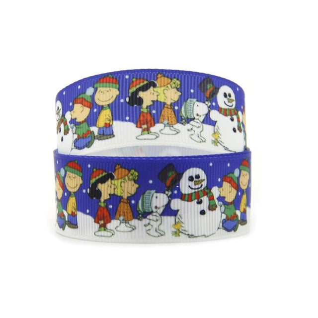 Dieses 22mm breite Band ist eine festliche Darstellung der bekannten Charaktere beim Spielen im Schnee und beim Schneemannbauen.