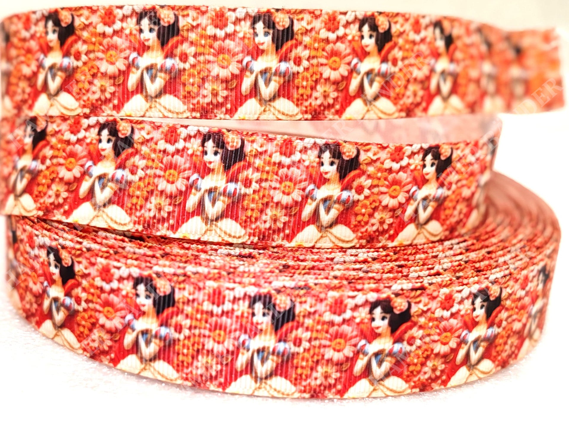 Dieses 22mm breite Band zeigt Schneewittchen inmitten eines Hintergrunds voller Blumen in warmen, lebendigen Tönen.