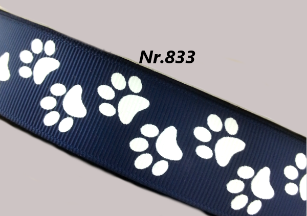 Dunkelblaues Band mit weißen Pfotenabdrücken – 25mm