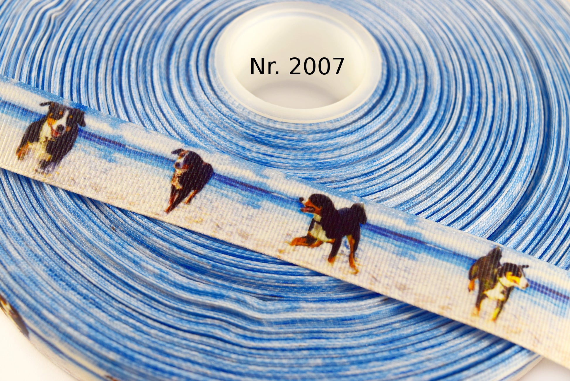 Dieses exklusive 22mm breite Band zeigt einen idyllischen Strandhintergrund, auf dem verschiedene Bilder der Hunderasse Appenzeller zu sehen sind.
