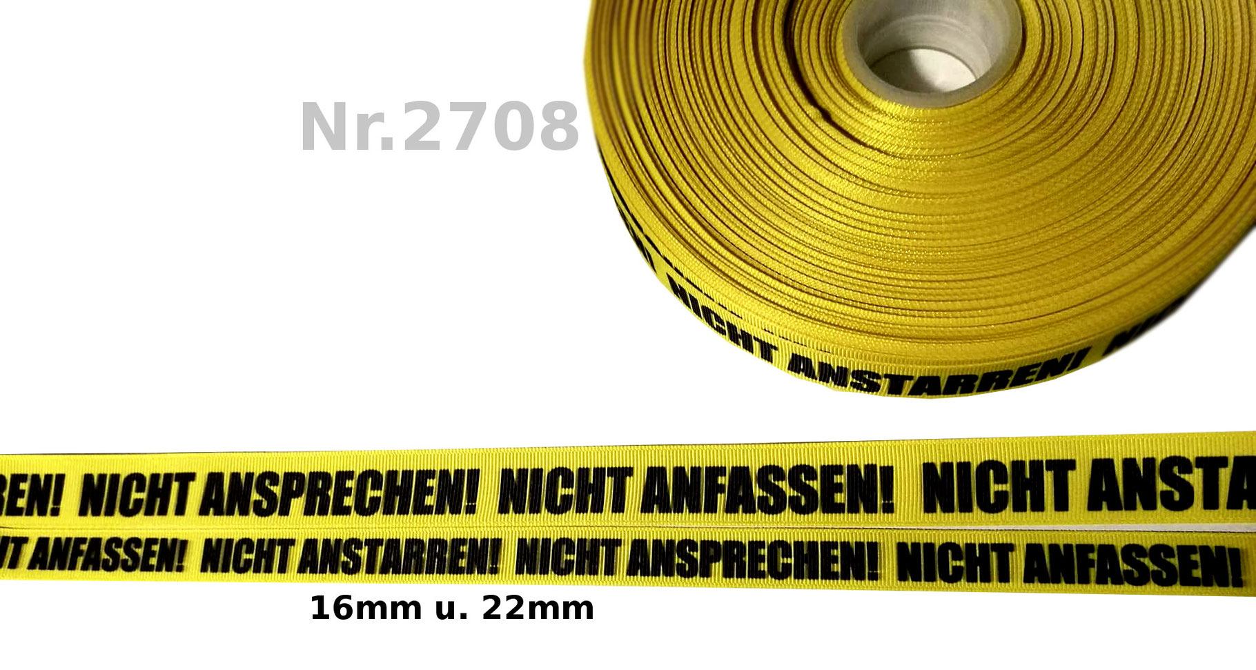Dieses exklusive 16mm breite Band mit auffälligem gelbem Hintergrund trägt die deutliche Aufschrift: „Nicht Ansprechen! Nicht Anfassen! Nicht Anstarren!“.