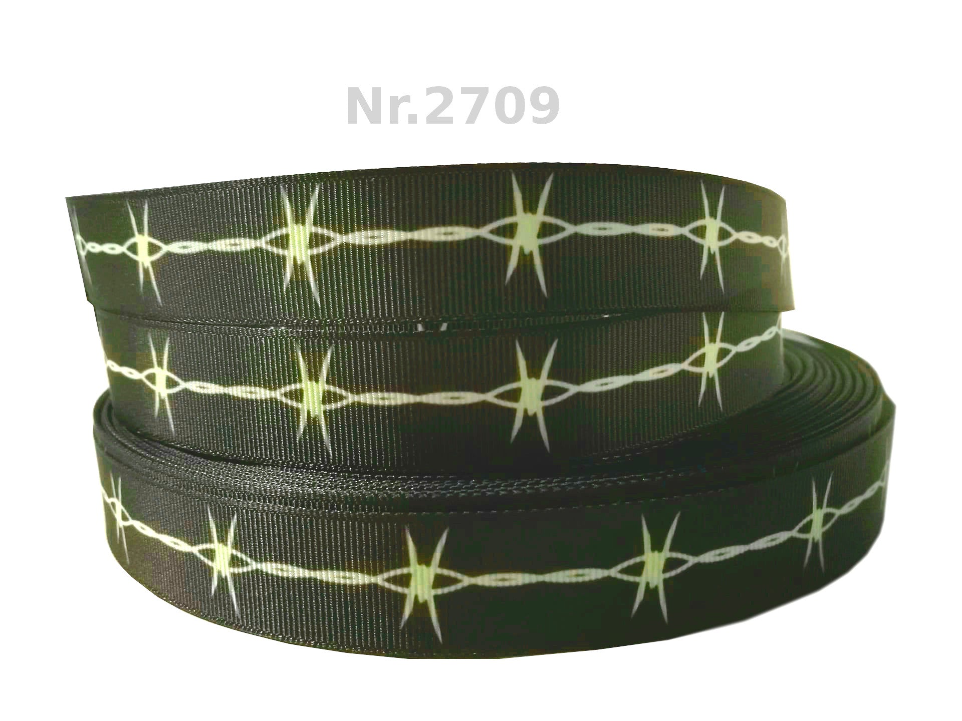 Dieses exklusive 22mm breite Band hat einen tiefschwarzen Hintergrund, auf dem ein durchgehender weißer Stacheldraht abgebildet ist.