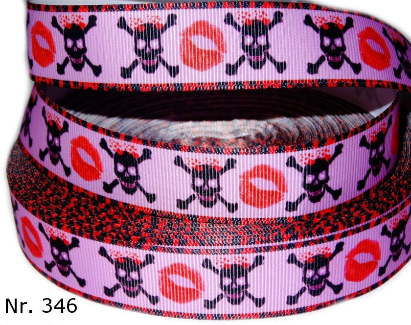 In der Mitte befinden sich Totenköpfe und rote Kussmünder – ein freches und einzigartiges Design für kreative Projekte, Accessoires und Dekorationen, die Charakter und Originalität ausstrahlen.