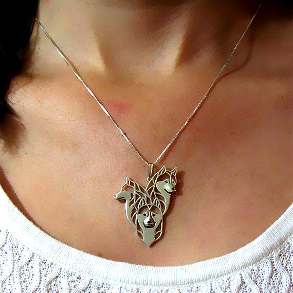 3 HUSKYS | Halskette mit Anhänger | Versilbert