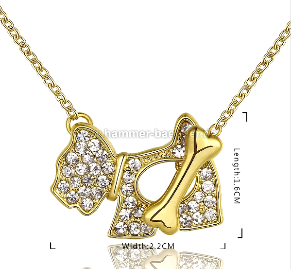Vergoldete Halskette mit Kristallanhänger - Hund mit Knochen