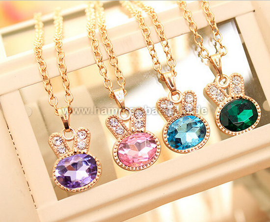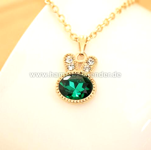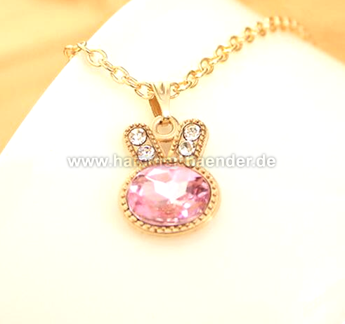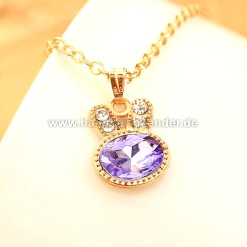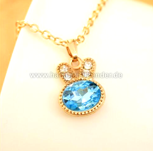 Entdecke unseren zauberhaften Hasen-Anhänger, kunstvoll vergoldet mit 18 Karat Gold und verziert mit schimmernden Saphir-Imitaten.
