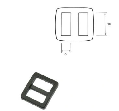 Schieber-Schnalle zum Durchziehen aus Kunststoff mit perfekt verarbeiteten, glatten Kanten. Am häufigsten als Verkürzungs-, Spann- oder Verbindungselement verwendet. Wesentlicher Bestandteil von Kurzwaren (Koffer, Hüfttaschen, Rucksäcke, Geldbörsen und Taschen) oder Hunde/Katzenprodukte (Halsbändern, Leinen).