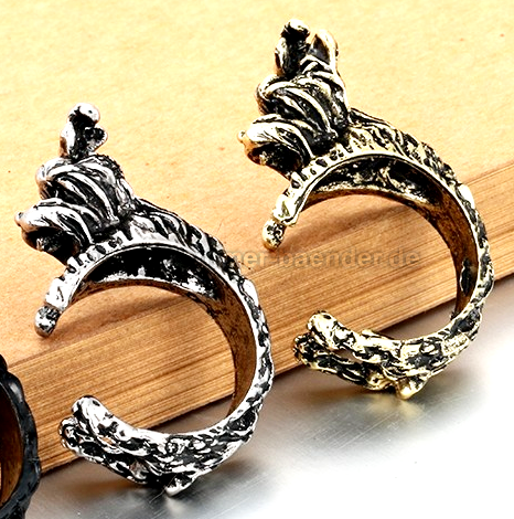 Speziell der Amstaff-Ring ist in einer ansprechenden versilberten Ausführung erhältlich, während der Schäferhund-Ring sowohl in versilbert als auch vergoldet angeboten wird.