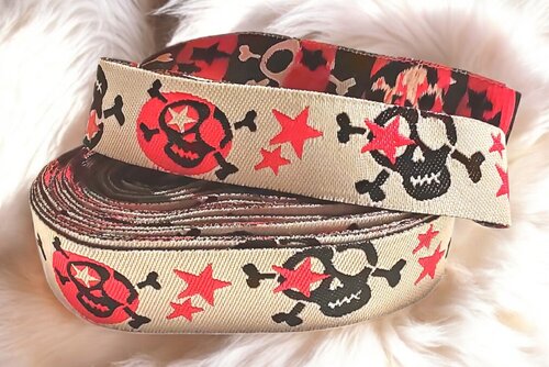 Rockiger Totenkopf-Look mit roten Sternen – Webband 16mm
