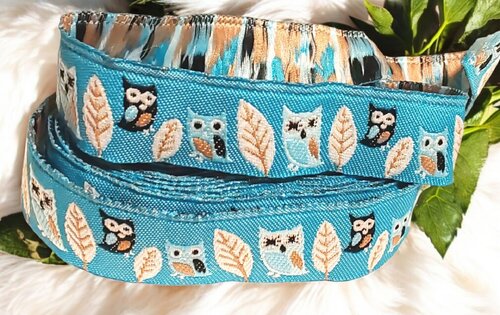 Herbstliche Eulen im Blättertraum – Webband 16mm