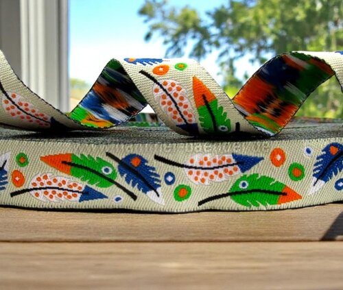 Dieses zauberhafte Webband bringt einen Hauch von Freiheit und Farbe in deine Kreativwelt! Auf dem dezenten grauen Hintergrund schweben bunte Federn in sanften und lebhaften Tönen – ein echtes Highlight für alle, die das Besondere lieben. Ob für Taschen, Haaraccessoires oder als fröhlicher Akzent auf deiner Kleidung – hier fliegt die Kreativität davon!